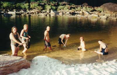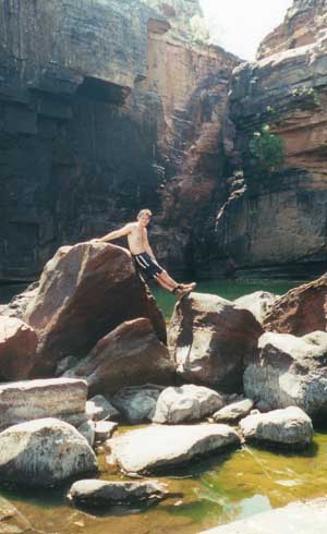 A beatiful waterhole at the top of Barramundi Gorge. Jump in and to get out you have to dive underneath the little bridge on the top left corner.